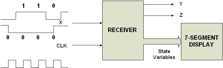 MUXes. Both clock and input X need to be debounced. The input x and outputs y and z should be